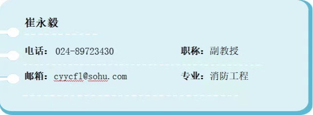 职 称:副教授 电 话:024-89723430 专业:消防工程 Email:cyycfl@sohu.com 研究方向:火灾基础理论、火灾发展及烟气流动规律与控制技术、初期火灾识别