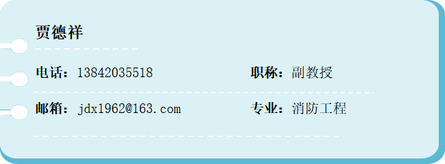 职 称:副教授 电 话:13842035518 专业:消防工程 Email:jdx1962@163.com 研究方向:防灭火理论与技术