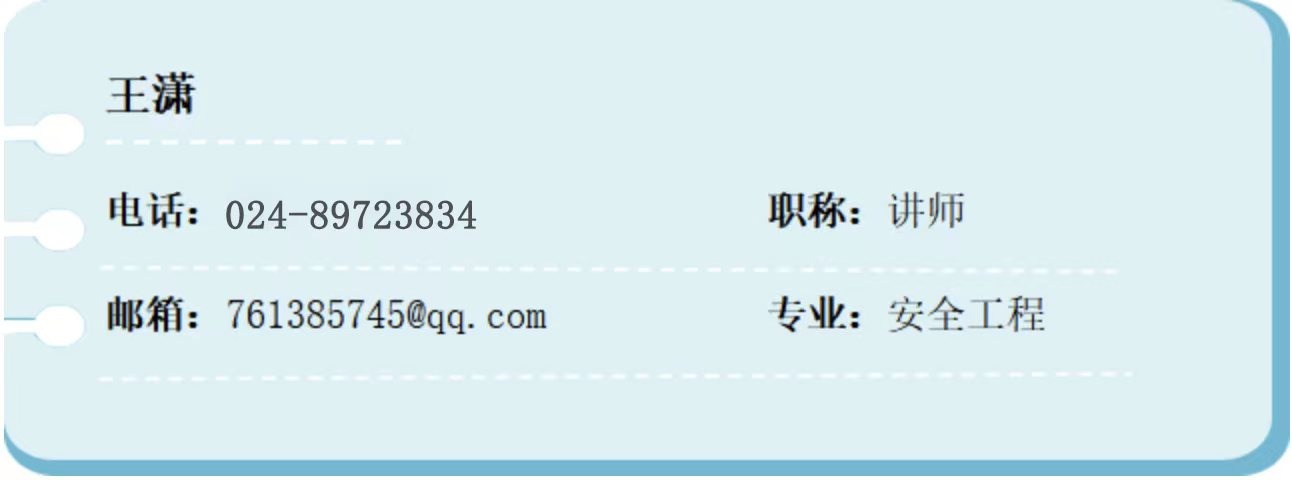职 称:讲师 电 话:024-89723834 专业:安全工程 Email:761385745@qq.com 研究方向:设备预测维护与管理、公共安全与应急救援