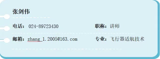 职 称:讲师 电 话:024-89723430 专业:飞行器适航技术 Email:zhang1.2005@163.com 研究方向:飞行器结构减振降噪