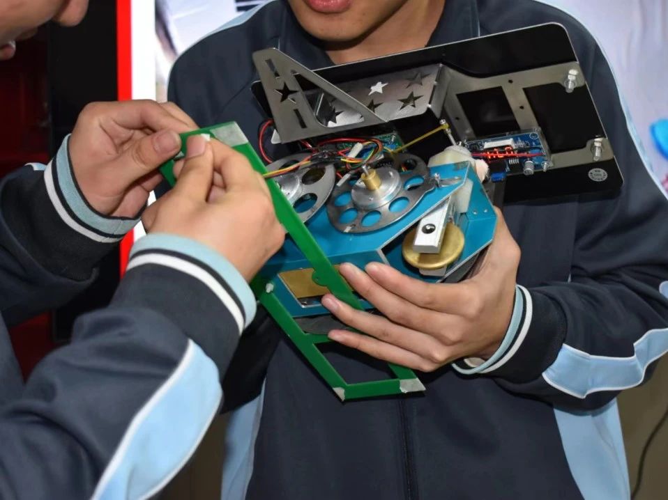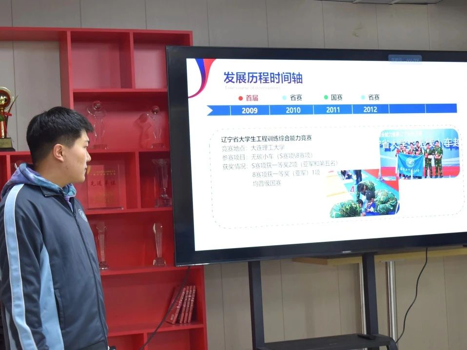 杨曦明同学展示往届获奖情况,通过播放往届获奖选手的采访录像和颁奖典礼视频,随后向学生们现场展示操作曾获得中国大学生工程实践与创新能力大赛全国第一名的太阳能电动车,进一步激发了同学们的参赛热情。