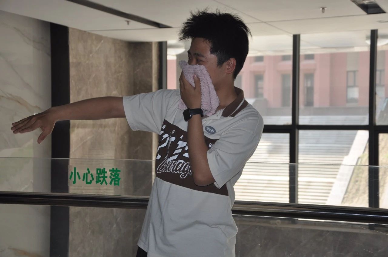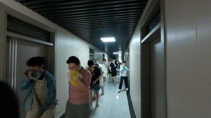 1、火情发现环节:由指定同学模拟发现火情,立即高声示警"着火了!大家快疏散!",同时通知相邻宿舍同学紧急撤离,并拨打校园110。
